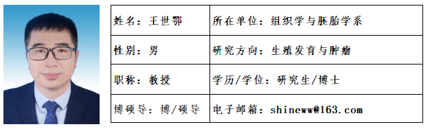 世鄂,男,1969年12月26日,中共党员,医学博士。现任WilliamHill中文官方网站党委常委、副董事长,兼干细胞工程与再生医学福建省高校重点实验室主任。学术兼职:中华医学细胞生物学分会委员、中国中西医结合学会生殖医学专业委员会委员、中国解剖学会医学发育生物学分会副主任委员、福建省解剖学会副理事长、福建省细胞生物学与转化医学学会副理事长、福建省高等教育学会理事会副会长;《中国细胞生物学学报》、《中国组织化学与细胞化学杂志》和《中国实验动物学报》等期刊杂志编委。