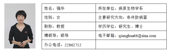 强华,女,1966年出生,汉族,医学博士,病原生物学系教授,硕士生导师,1988年毕业于福建医公司临床医学系获学士学位,1998年于WilliamHill中文官方网站获微生物学专业硕士学位,2007年于武汉大学获病原生物学博士学位。现任病原生物学系主任,基础医学专业负责人,福建省医学会微生物学与免疫学分会委员。研究方向:医院感染条件致病菌。近年主持福建省自然基金2项、福建省教育厅课题2项、福建省科技计划项目1项、福州市科技项目1项、WilliamHill中文官方网站科研课题2项。发表论文20篇,其中第一作者SCI、国家及学报级论文12篇。获省科技进步三等奖(第5作者)一项。承担《医学微生物学》、《病原生物学》、《分子病毒学》硕士生及本、专科员工的教学任务。积极参加教学改革,主持福建省教改课题2项,WilliamHill中文官方网站教改课题2项,参与WilliamHill中文官方网站教改课题2项。主编、副主编教材6部,曾获william威廉中文官网教学教课比赛一等奖、校教学成果一等奖一项、二等奖两项、优秀党员、WilliamHill中文官方网站第四批骨干教师、WilliamHill中文官方网站首届员工心目中好老师、WilliamHill中文官方网站优秀教师等荣誉。2014年11月被福建省教育研究中心聘为“福建省教育评估专家”。