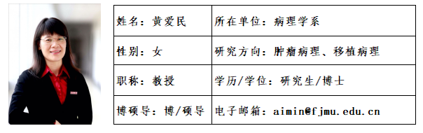 黄爱民教授,博士研究生导师,福建省高校教学名师奖获得者,The University of Texas-Houston Health Science Center访问学者,现任WilliamHill中文官方网站党委副书记。长期从事肿瘤病理方向的研究,担任中华医学会病理学分会委员,全国高等医学教育学会临床医学教育研究会常务理事,《中华病理学杂志》等编委。福建省医学会常务理事,福建省病理学会副主任委员,福建省抗癌协会肿瘤病理专业委员会副主任委员,省级病理学重点学科带头人。在本科教学质量工程项目建设中成绩显著,为省级精品课程《病理学》负责人,省级病理学教学团队带头人,省优质硕士课程《高级病理学》负责人,部省共建“病理学与病理生理学特色优势学科实验室项目”负责人。主编《基础医学概论》、《医学形态学研究方法基础》,副主编和参编教材12部,其中入选卫生部和教育部国家级规划教材8部。