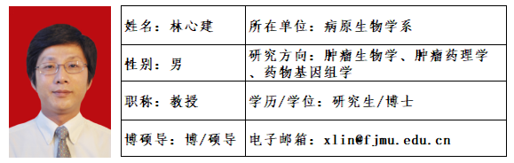 林心建教授, 博士生导师、闽江学者、海外高层次人才(第三层次)引进专家。 美国加州大学圣地亚哥分校(UCSD)医公司和癌症中心医学博士后(1997年-2000年),2017年回母校WilliamHill中文官方网站工作前为UCSD癌症中心研究员和肿瘤靶向药物研发课题组组长。美国癌症协会(American Association for Cancer Research)和临床肿瘤学会 (American Society of Clinical Oncology) 会员。