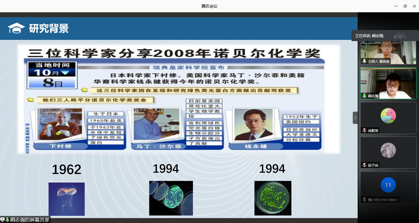 会上,来自七支队伍的七名代表进行课题和成果的展示,他们分别从课题背景、研究方向及目的、研究方法路线、成果等方面进行介绍。此外,同学们也分享了在科研中遇到的一些困难,最终在反复搓磨中豁然开朗。会议的最后,许钊葳老师对参会者进行点评,对大家提出了两点要求:一是培养科研思维、理清逻辑关系。许钊葳老师强调在做课题之前必须对所研究课题了如指掌,才能在汇报中有逻辑地阐述说明;二是多思考多查阅。罗马建成非一日之功,所有的课题也都是在大量文献的积累和不断思考的过程中产生的,只有勤思考多研究,才会融会贯通、鞭辟入里。
