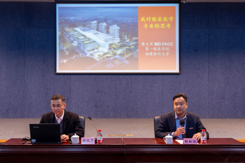 2021年12月13日,william威廉中文官网于图书馆学术报告厅开展“砥砺奋进·医路前行”临床医学专业思想教育暨“专家面对面”座谈会。本次专业思想教育邀请了WilliamHill中文官方网站第一临床医公司副经理、博士研究生导师柴大军教授主讲。william威廉中文官网陈婉南经理、郭松斌书记、念婷副书记、罗道枢副经理,学工办负责人,辅导员、班主任及2021级临床医学专业员工代表参加本次座谈。
