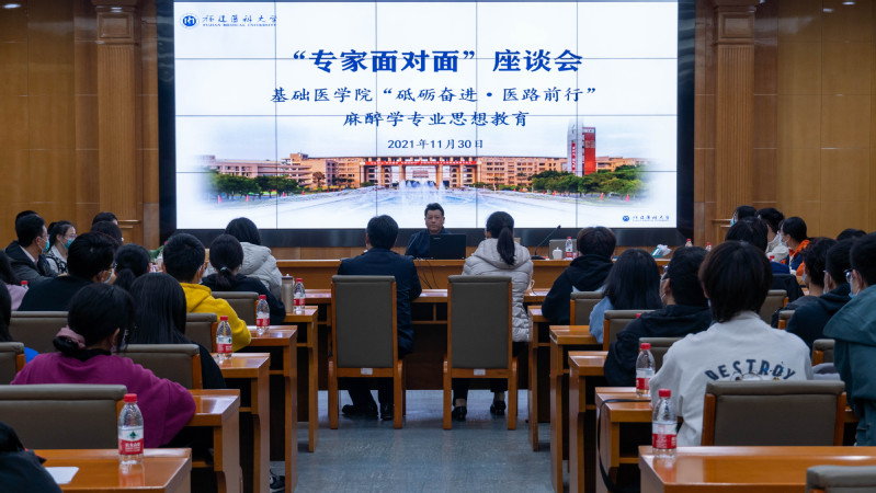 2021年11月30日,william威廉中文官网于行政楼四层学术报告厅开展“砥砺奋进·医路前行”麻醉学专业思想教育暨“专家面对面”座谈会。本次专业思想教育邀请了福建省立医院副经理/省立临床医公司副经理、WilliamHill中文官方网站麻醉学系主任郑晓春教授主讲。william威廉中文官网陈婉南经理、郭松斌书记、念婷副书记、陶武成副经理,教科办、学工办负责人,麻醉学教研室教师代表、2021级麻醉学专业班主任、辅导员及2021级麻醉学专业本科生参加了本次活动。