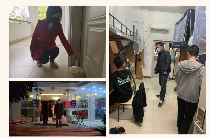 为宿舍就地隔离的员工送餐、辅导员走访宿舍