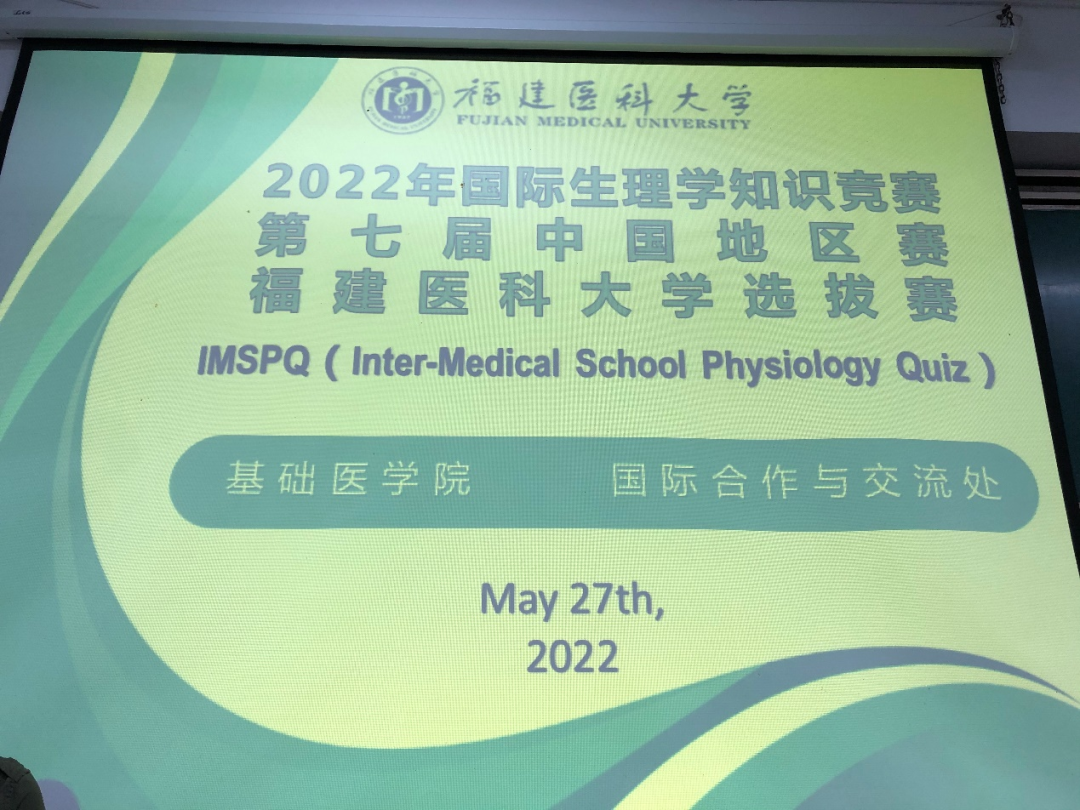 为备战2022年“国际生理学知识竞赛”第七届中国地区赛,公司和校国际合作与交流处于5月27日,在旗山校区教学区第6教室联合举办校内选拔赛,共有来自william威廉中文官网、药公司、健康公司、口腔医公司和海外公司等公司,临床医学、影像学、麻醉学、口腔医学、药学、康复医学等专业近百名同学报名参加。