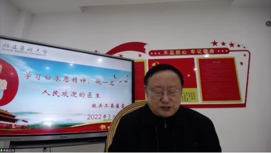 最后,崔老师勉励同学们:在新的百年开局之际,福医学子当学习白求恩精神,成为“一个高尚的人,一个纯粹的人,一个有道德的人,一个脱离了低级趣味的人,一个有益于人民的人”,做一名人民欢迎的医生。
