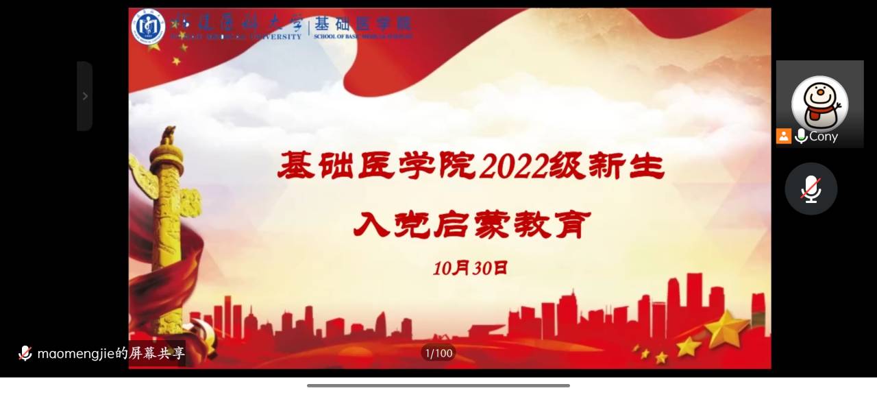 登极峰做强者洒青春热血,望沧海磨利剑创颐和辉煌。本次入党启蒙教育带领全体新生更加深入认识党的性质和宗旨、学科专业和校园生活,新生同学纷纷表示受益匪浅。今后将深入学习贯彻党的二十大精神,努力学习党的理论知识,坚定不移听党话、跟党走。将今晚收获的经验付诸于实践之中,不断丰富医学知识储备,磨练临床操作能力,铭记健康所系,性命相托的医学誓言,在不懈进取中描绘青春。在新生同学们热烈的希望和憧憬中,本次学习经验分享讲座圆满结束!