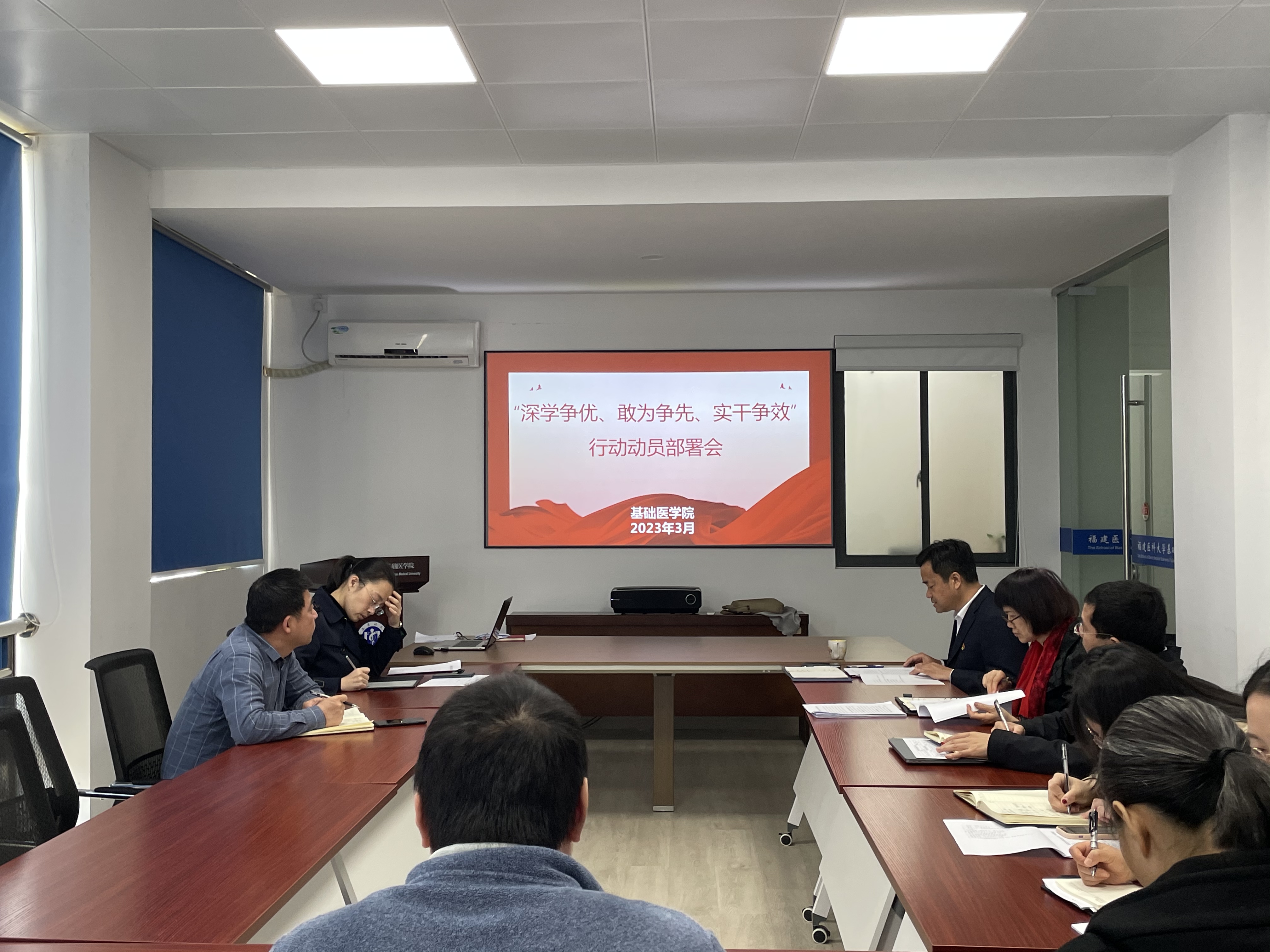 会议传达了公司“深学争优、敢为争先、实干争效”行动动员部署会会议精神,公司党委书记作动员部署讲话。一是深学争优,加强理论武装,把党的二十大精神落到实处。深入学习贯彻习近平新时代中国特色社会主义思想和党的二十大精神,要认真学习贯彻党中央、福建省委和公司党委的重大决策部署,学习习近平总书记教育重要论述和习近平总书记对福建工作的一系列重要讲话重要指示批示精神等。二是敢为争先,聚焦公司发展大局,推动改革创新落地见效。严格按照公司党委党建和思政工作要求,完善“三全育人”工作格局,全面提高“课程思政”建设质量;凝练党建工作特色品牌,扎实做好公司党建工作标杆院系创建;夯实基层基础,将教工支部与科研团队、实验室的学术研究交叉融合,党建和团队建设、教学改革、社会服务良性互动、相互促进。三是实干争效,强化作风建设,向肯干能干要效益。坚持引育并举,全力引进高层次领军人才,以基础医学研究院成立为契机,加强学科团队建设;抓好员工工作,关爱帮扶特殊群体员工,千方百计推动2023届毕业生就业创业工作。四是师生至上,守好安全底线,全力确保公司大局稳定。要切实提高政治站位,提升政治敏锐性,严格落实意识形态主体责任,严格阵地管理,明确重点环节和关键任务,持续关注师生思想动态,解决师生合理诉求,加强网络舆论正面引导教育,落实安全稳定各项任务,着力保障公司各项工作平稳、有序、持续推进。