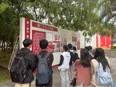 【图为2020级麻醉学团支部成员在参观红色闽医展】