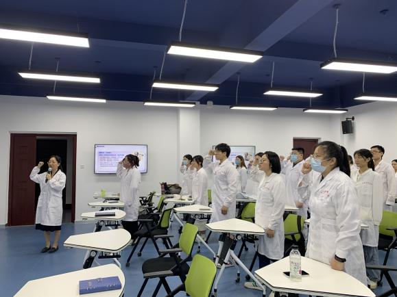 罗道枢副经理也强调了临床实习中注重保护患者隐私、注意医疗规范和安全等事项。全体2019级基础医学专业本科生在临床实习会最后进行了医员工誓言宣誓仪式。