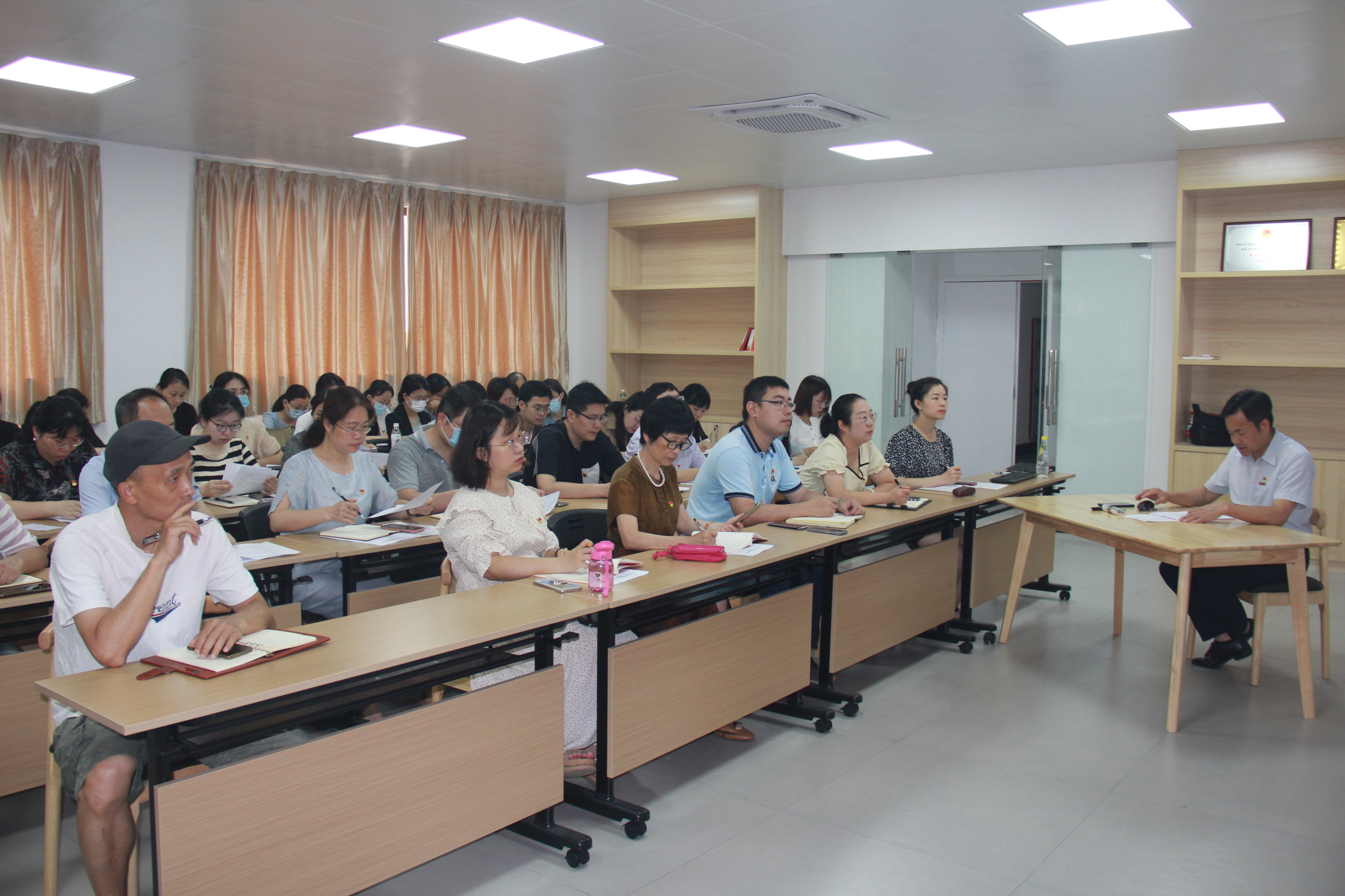 郭松斌围绕学习体会和工作实践,从“找准当前历史方位和坐标,深刻认识从严治党内涵”“践行‘全心全意为人民服务’宗旨,深化责任担当认识”“锤炼忠诚干净担当的政治品格,增强担当作为本领”三个方面以独到的见解、鲜活的语言、详实的案例,为广大党员干部带来丰盛的精神大餐。随后,郭松斌同志与所联系的机关党支部、病理学系党支部、癌症与退行性疾病转化医学党支部、神经科学研究公司党支部深入交流,开展专题调研。