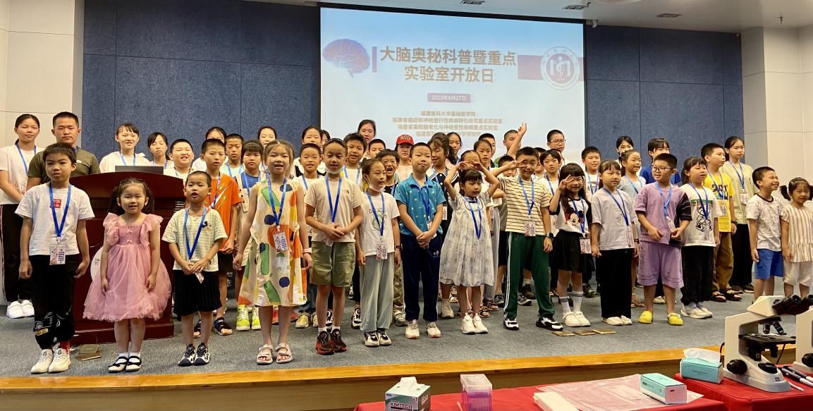 为了加强国家科普能力建设,扩展青少年科学视野,提高青少年的动手动脑能力和综合素质;同时让科研工作者的子女了解家长的工作,促进亲子关系。2023年8月27日,william威廉中文官网联合福建省癌症和神经退行性疾病转化研究重点实验室、福建省高校脑老化与神经变性疾病重点实验室和福建医科老员工命科学博物馆共同举办的实验室开放日活动顺利开展。本次活动主题为“探索大脑的奥秘”,来自福州市鼓一小、鼓二小、师大附小、福州大学附属实验公司、屏东中心等公司的100余名员工和家长参加了本次重点实验室开放日活动。