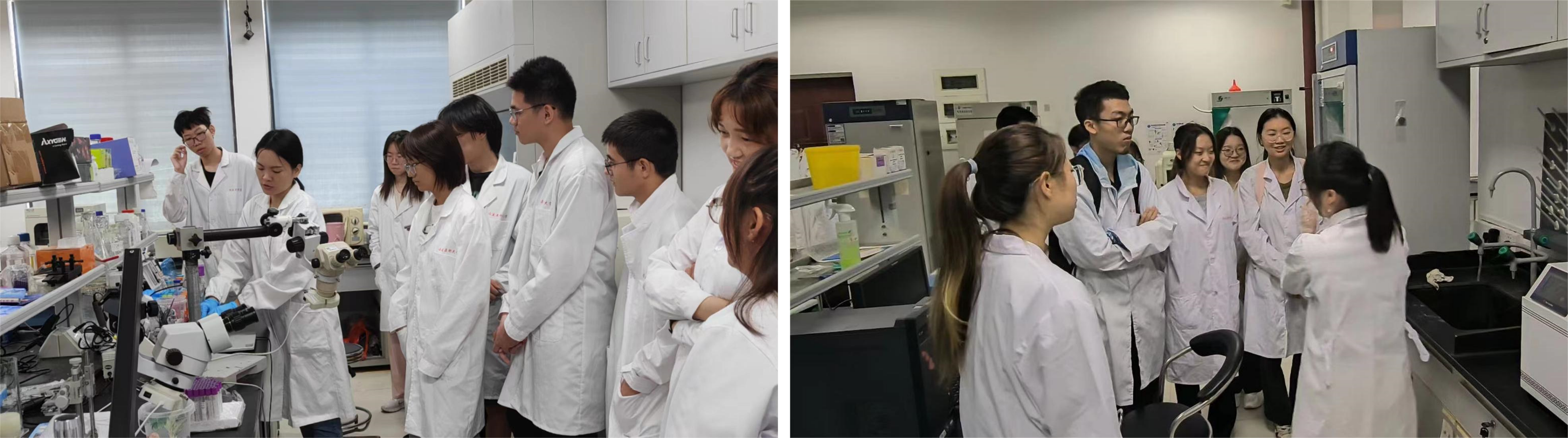 在第一周的科研转轮见习过程中,带教老师分别向员工认真细致地介绍各实验室规章制度、安全注意事项、各PI团队的课题方向和内容,带领员工参观了实验室,并动手参与部分实验操作和实验室日常劳动。同学们还参加了实验室组会、Journal Club等学习活动,对基础医学科学研究表现出浓厚的兴趣。
