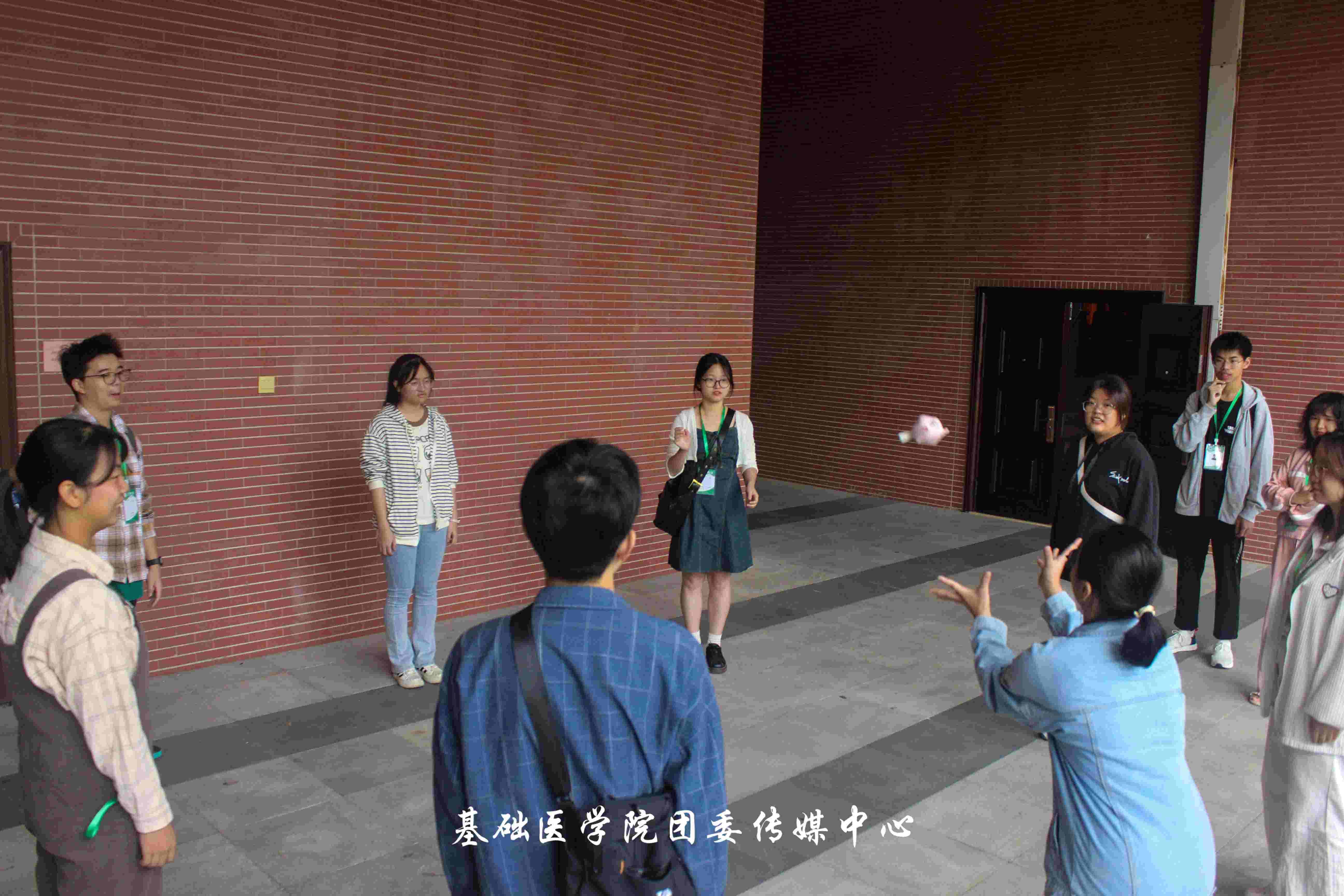 这个环节具有较强的竞技性,考验新成员们的心理素质和反应力,同学们积极参与,与对手进行心理和身体上的较量。游戏过程中,双方队员用夸张的假动作迷惑对手,打得有来有回,在激烈的角逐中,既增强了团队凝聚力,也成功激发了活动的竞技性,为素拓开了个好头。