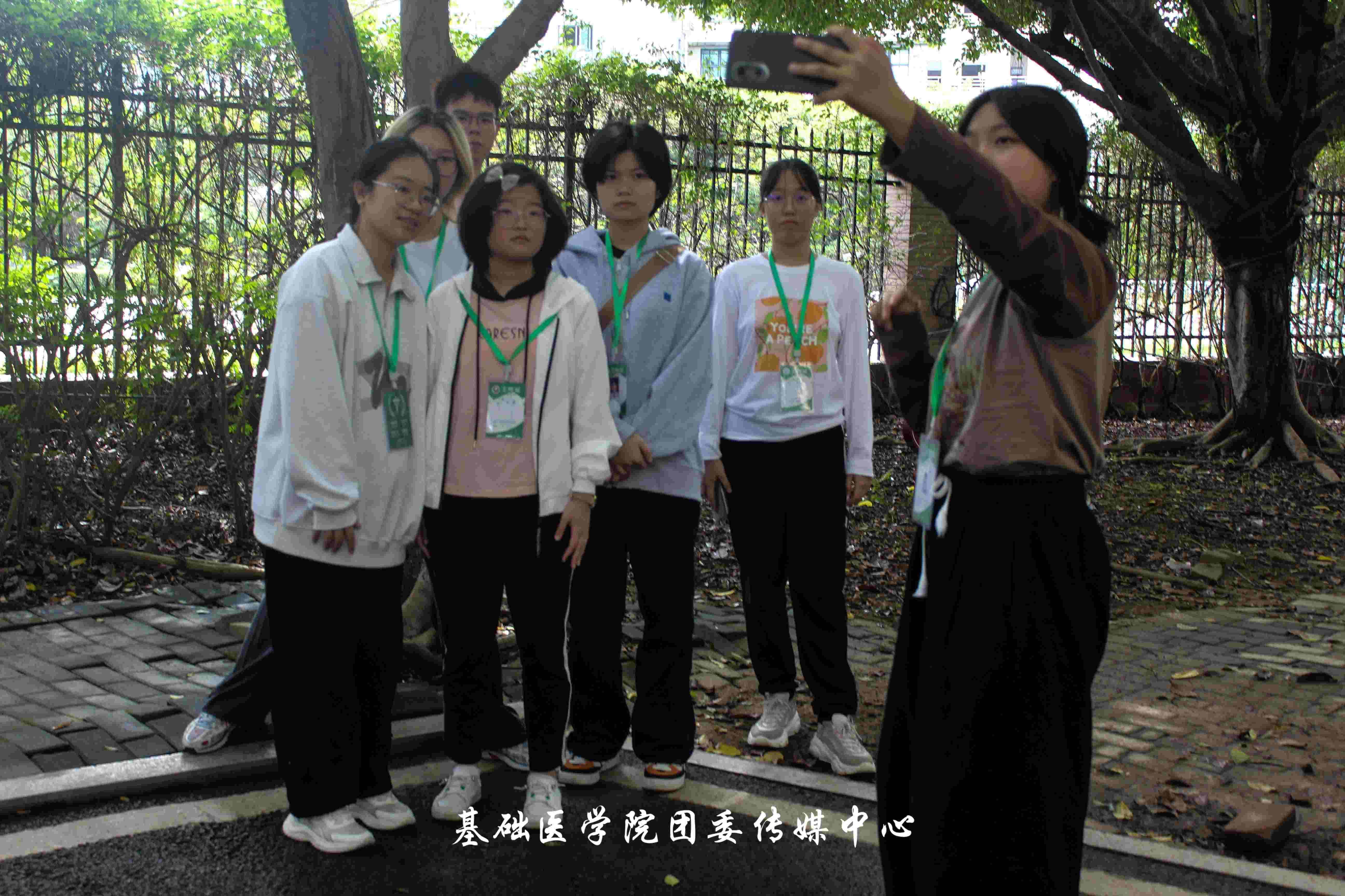 每个成员绞尽脑汁、集思广益,在记忆中搜索校园的标志性场景。校园内满是他们奔波的身影,每发现一处目标他们都会大声庆祝,不同组的成员也会相互帮助,为对方指明方向。大家在现场留下了珍贵的小组合照,增强了集体荣誉感,为未来团学工作中相互配合打下坚实基础。