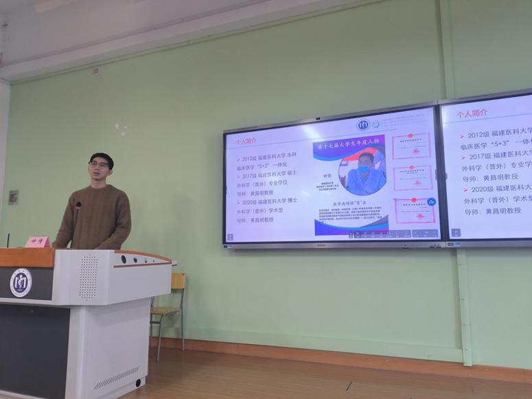 钟情学长从自身经历出发,讲述自身从本科到研究生再到博士的求学经历,诙谐幽默的语言让现场充满了笑声和活力。同时,钟情学长还分享了他对于临床实践和学术研究的经验和思考,让同学们对科研有了更为深刻的认识与理解。最后,钟情学长鼓励学弟学妹积极进取、坚定目标,勇于面对求学路上的挑战和困难,不断追求进步和成长。