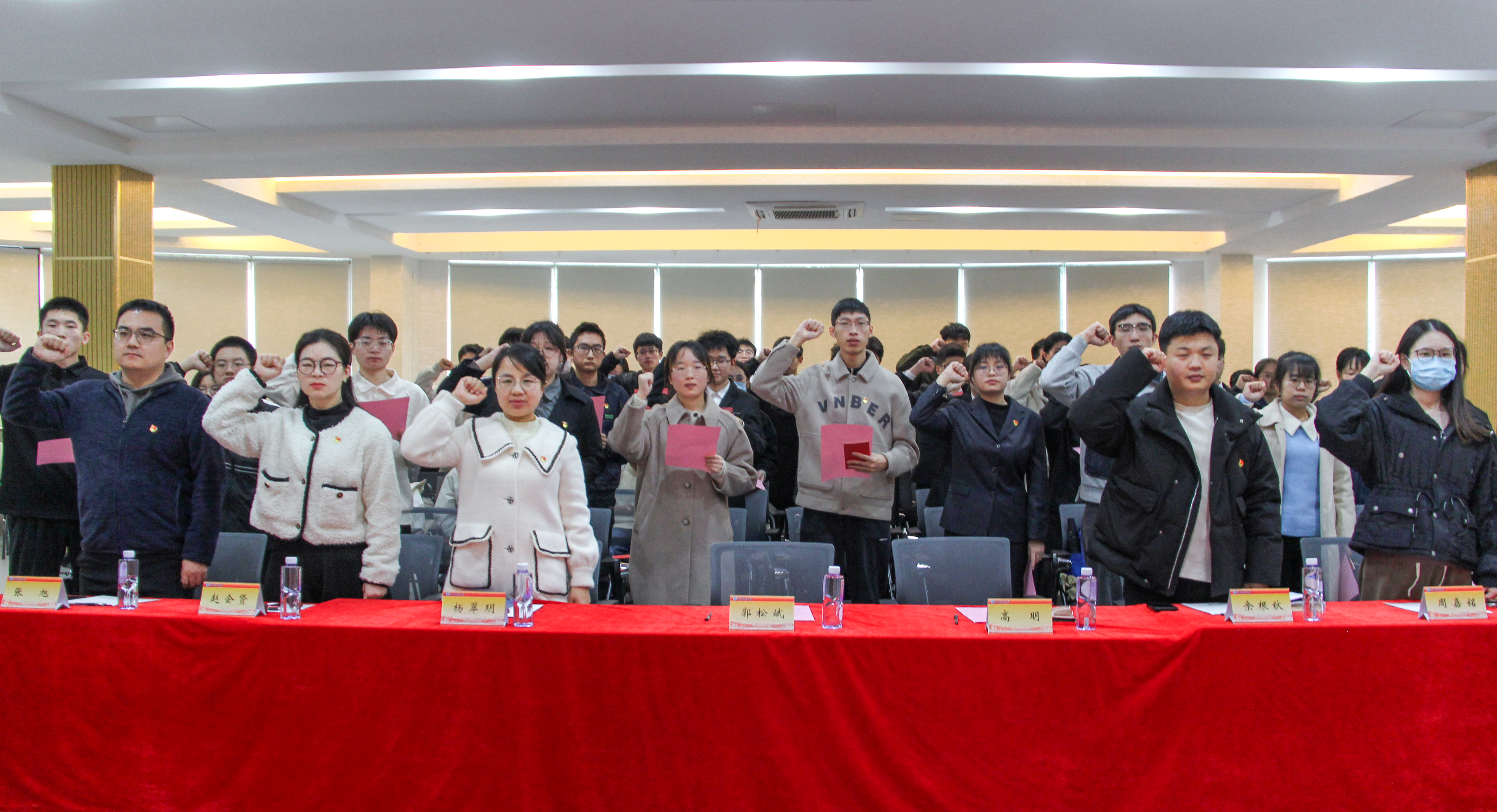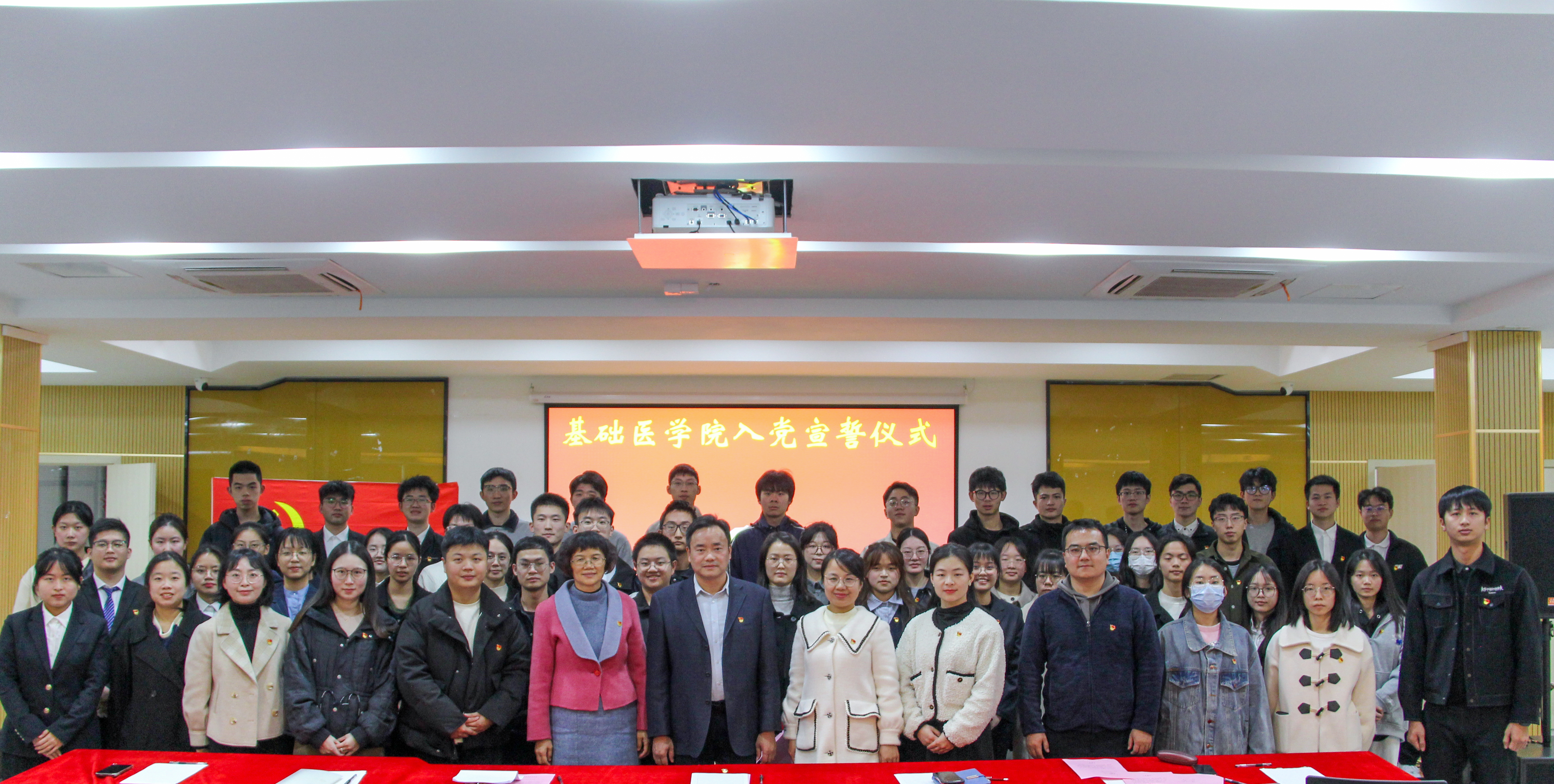 1月2日下午,公司党委在员工社区举办预备党员入党宣誓仪式。公司党委书记郭松斌,副书记高明,学工办副主任、分团委副书记杨翠玥,党支部书记代表和入党积极分子代表出席本次仪式,共同见证50位新发展预备党员在党旗下庄严宣誓。