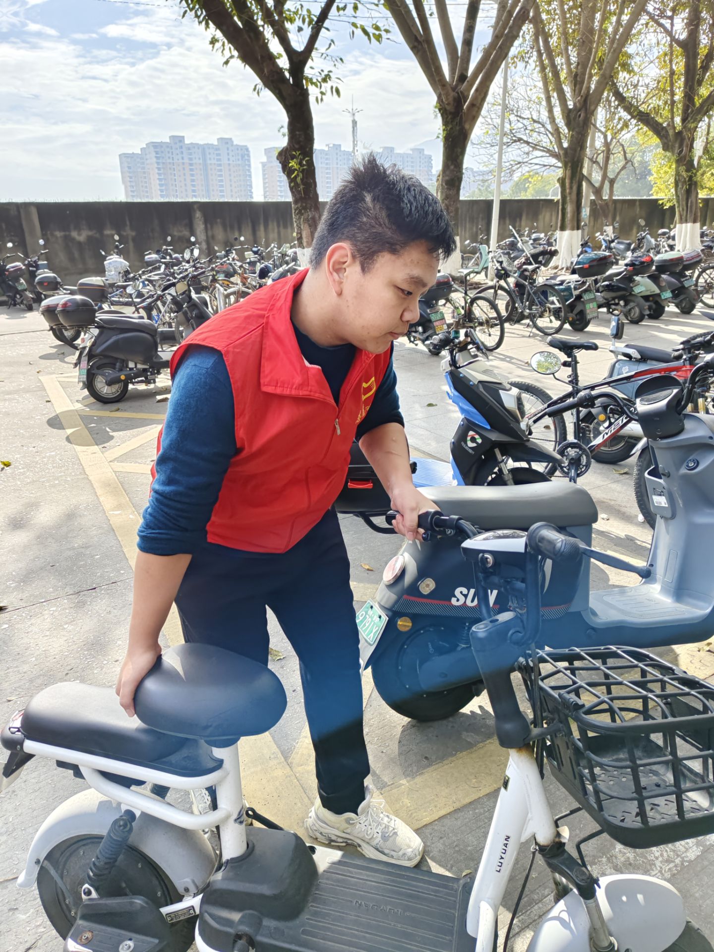 在宿舍楼前,车辆摆放秩序是维护宿舍区整体形象的重点。志愿服务队员们通过设置合理的停车区域、加强巡查和管理等措施引导同学们积极配合车辆有序停放,既美化了宿舍环境,又为同学们提供了便利的出行条件。