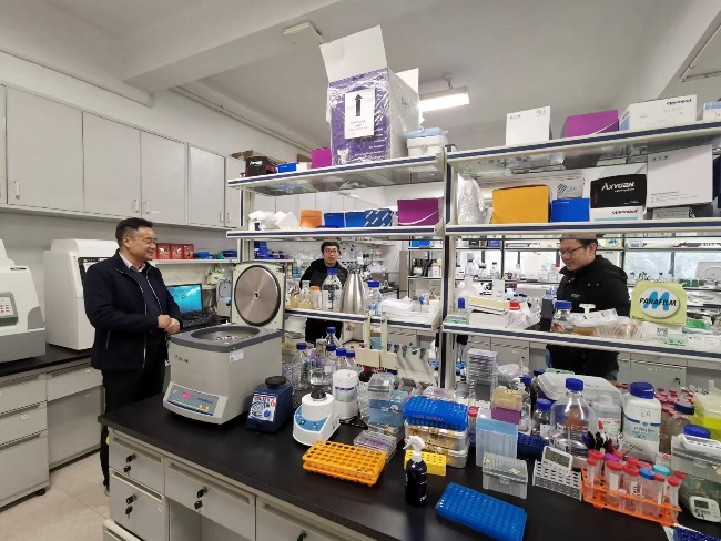 为筑牢校园安全防线,保障校园安全稳定,2月6日下午公司党委书记郭松斌带领分管副经理罗道枢深入到公司办公室、学系/中心办公室、实验室等场所开展寒假春节安全检查工作,对实验室安全管理制度与仪器设备操作规程、危险化学品的储存及使用、生物安全管理、用电用气消防安全等情况逐一检查,同时代表公司对寒假期间坚守教学科研岗位工作的师生送上新春慰问和节日祝福。