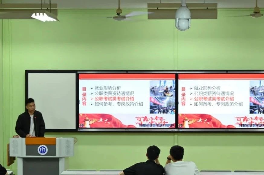 郭培源老师从就业形势分析、待遇情况、考试类型以及如何备考、专岗政策介绍等方面展开,同时结合自身从事公考行业多年的经验,向在场的同学们详细讲解相关政策和考试的注意事项。
