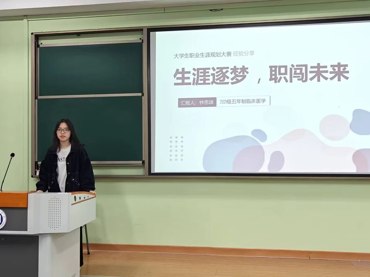 钟思琪为同学们解读了职规大赛的校级和省级的相关备赛经验,从自我参与过程入手,向同学们讲授职业规划书的撰写技巧,帮助同学们梳理职业规划成才思路。