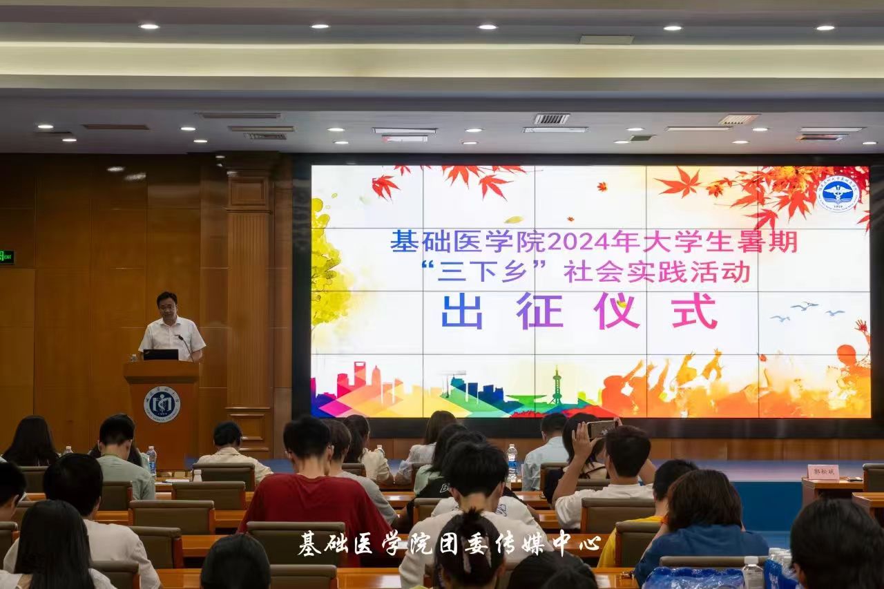 7月8日晚,william威廉中文官网在行政楼学术报告厅隆重举行2024年暑期“三下乡”社会实践出征仪式。公司党委书记郭松斌、党委副书记秦雷、团委书记杨翠玥,近100名实践队师生代表参加了本次出征仪式。