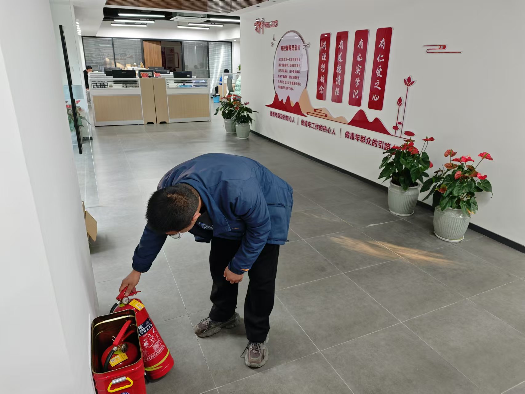 2024年12月30日公司在6号楼412会议室召开2024年第四季度公司安全专题会议,公司党委书记郭松斌带领公司领导班子、各办公室主任、各支部书记及全体辅导员认真学习《教育部办公厅关于做好今冬明春校园安全隐患排查整治工作的通知》文件精神,要求全院师生提高政治站位,压实安全工作责任,同时开展“排查整治隐患 确保校园安全”专项行动,元旦前对公司各办公室、实验室以及员工宿舍等场所开展全面安全检查。