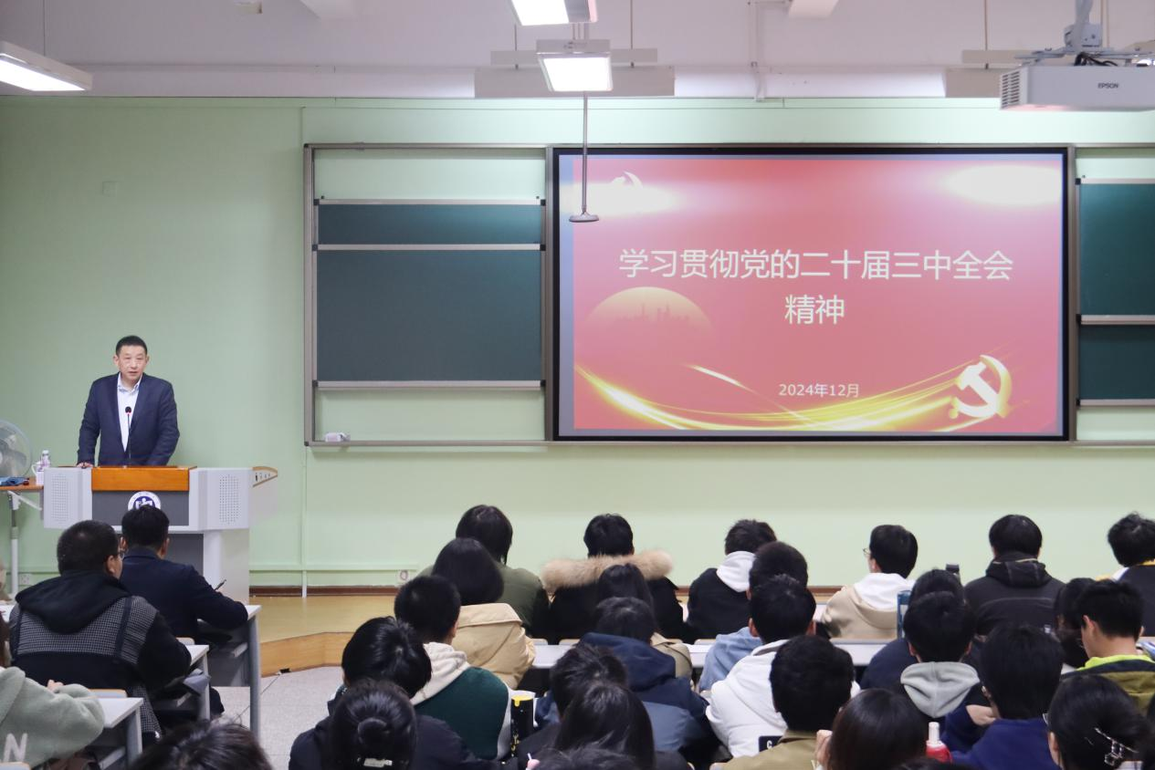 林旭从深刻认识党的二十届三中全会重要意义、深入学习领会习近平总书记在党的二十届三中全会上的重要讲话精神、全面准确理解《中共中央关于进一步全面深化改革、推进中国式现代化的决定》提出的进一步全面深化改革重大举措等方面作了深入阐述。林旭指出,要深入学习领会党的二十届三中全会精神,紧紧围绕全会确定的目标任务,始终把改革精神、改革思维、改革方法贯穿各项工作全过程,以钉钉子精神做好各项改革任务的落实。同时,林旭勉励师生要在进一步全面深化改革过程中,找准自身的定位,积极主动把个人的理想追求融入党和国家事业之中,志存高远、脚踏实地,不畏艰难险阻,勇担时代使命。
