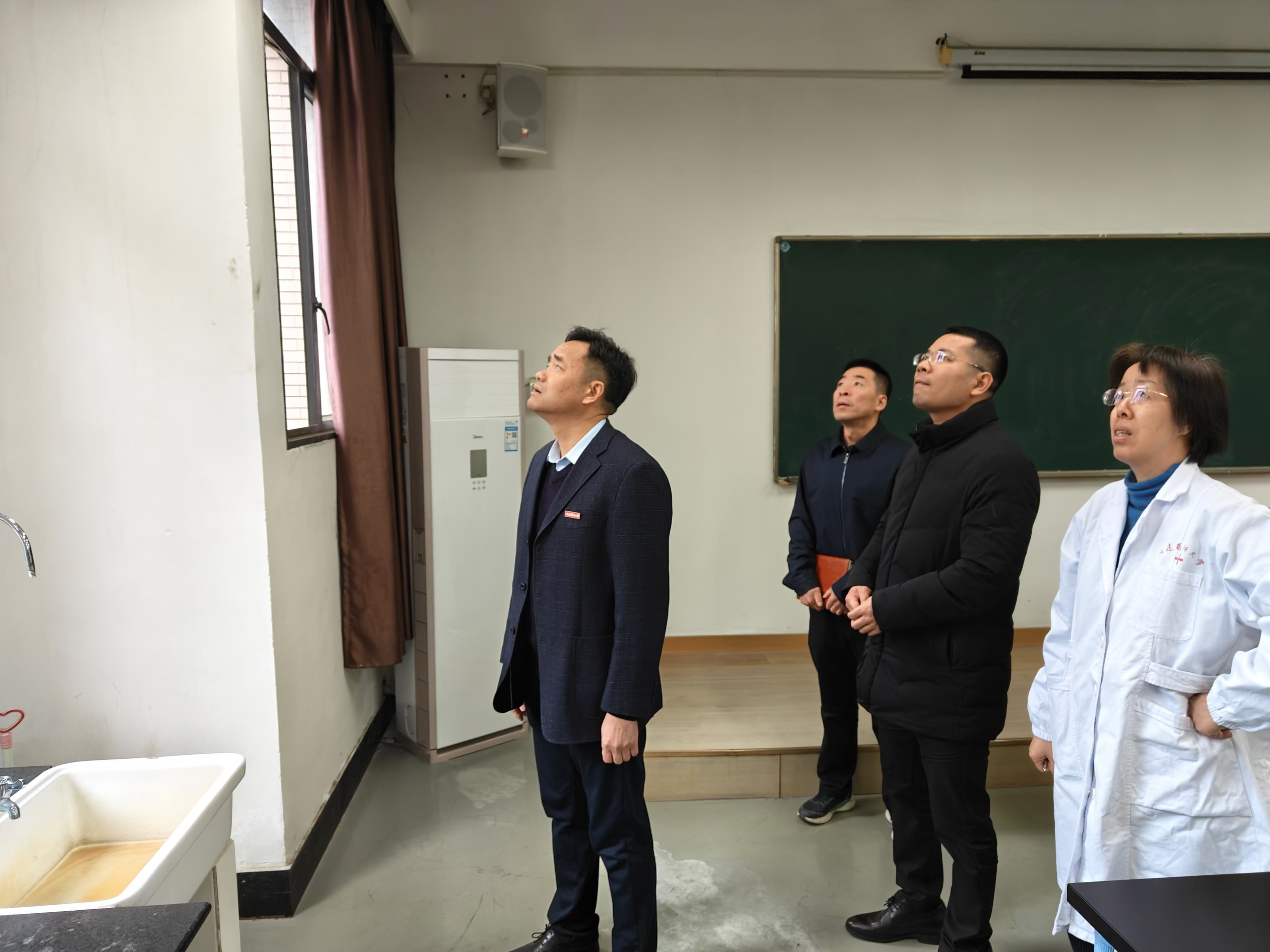 随后,检查组一行深入教学实验室开展安全检查,不仅涉及教学实验室的安全和卫生状况,还包括仪器设备的运行情况及实验教学准备工作等。