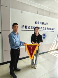 罗道枢副经理代表公司对2025年第一季度实验室安全评比表现优秀的消化道恶性肿瘤教育部重点实验室、福建省癌症和神经退行性疾病转化研究重点实验室以及干细胞工程与再生医学福建省高校重点实验室颁发“模范实验室”流动红旗。