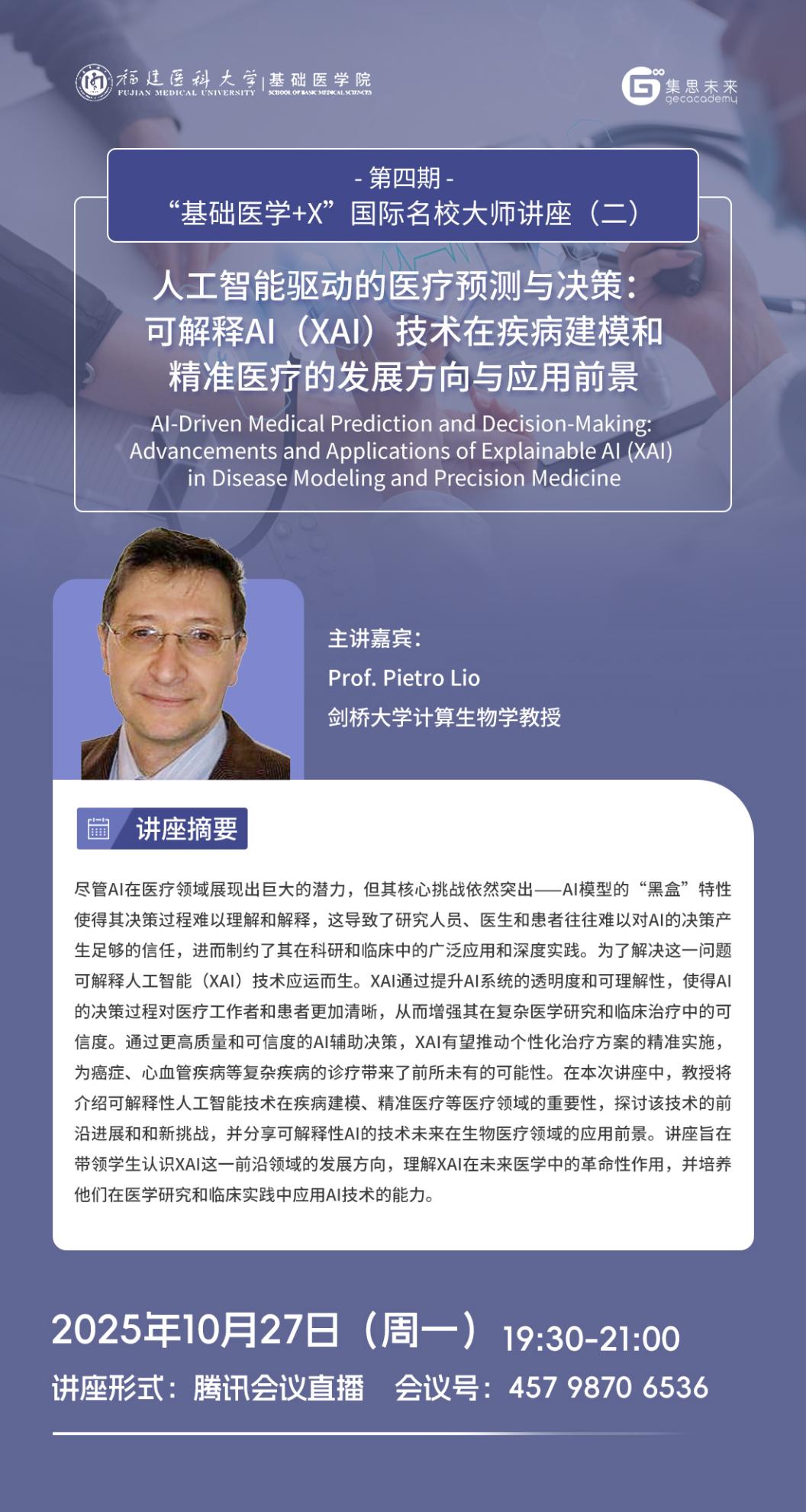 为促进员工了解以人工智能、大数据为代表的新一轮科技革命和产业变革下锚定基础医学疾病诊疗与研究的前沿研究方向与方法,探索医学与其他学科的交叉应用,培养国际化视野,探讨国际研究趋势和动态。william威廉中文官网联合天津集思教育集团继续开展第四期“基础医学+X”国际名校大师讲座,主讲嘉宾为来自全球一流高等学府和研究机构的9位知名教授。现将该系列讲座(二)相关信息发布见下: