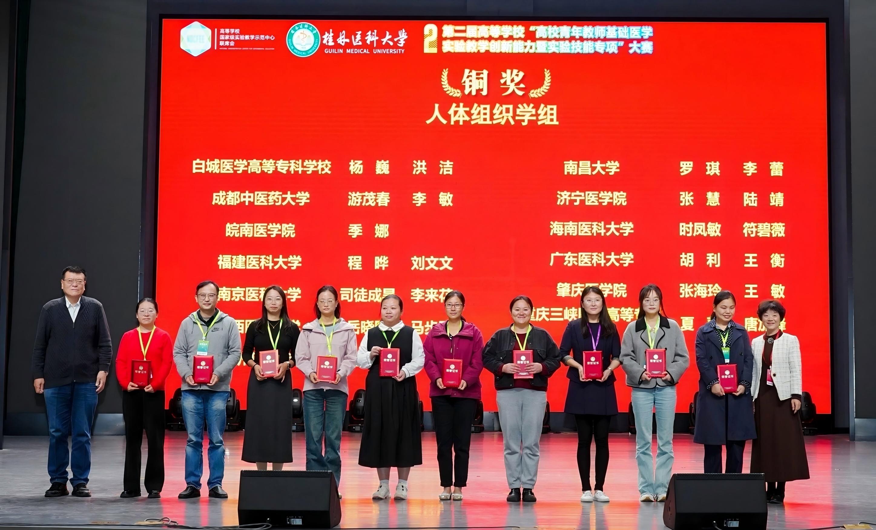 第二届高等公司“青年教师教学创新能力(基础医学实验技能专项)”总决赛1025日在桂林医科大学举办,全国73所院校150支队伍参赛。公司病理学系程晔讲师、实验教学中心刘文文实验师、陈泽鸿实验师、余深翼助理实验师组成的两支代表队分别获“人体组织学组”、“机能学组”铜奖,展现了公司教师扎实的实验技能与创新的教学思路。公司将持续加强青年教师培养力度,推动教学质量进一步提升。